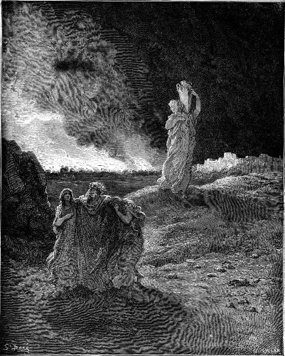 [Для тех, кто не читал библию. Жена Лота – это жительница Содома, возможно, Язычница по крови, которая обернулась, чтобы последний раз взглянуть на родной город, утопающий в огне, в котором родилась и прожила свою жизнь. Еврейский бог сжег его дотла в числе многих других Языческих городов. И за этот последний взгляд еврейский бог превратил ее в соляной столп. Великие художники, тронутые этим единственным проявлением патриотизма в библии среди сплошного еврейского предательства и продажности, посвятили ей свои картины.]